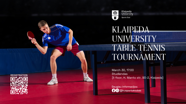 We would like to invite all members of our KU community to the Klaipeda University Table Tennis Tournament. This tournament will be organized on March 30, 2023.