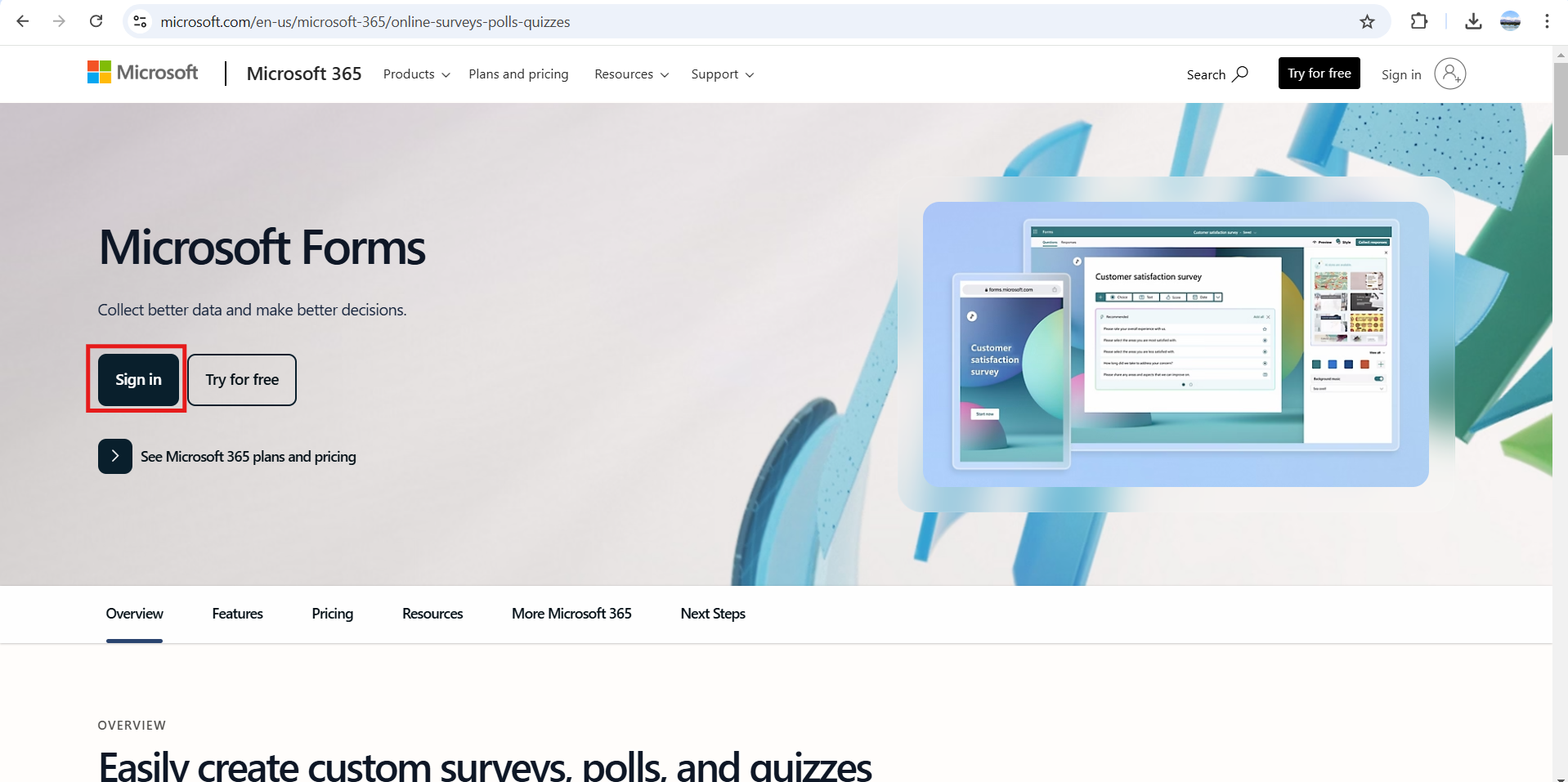 Visit http://forms.office.com.