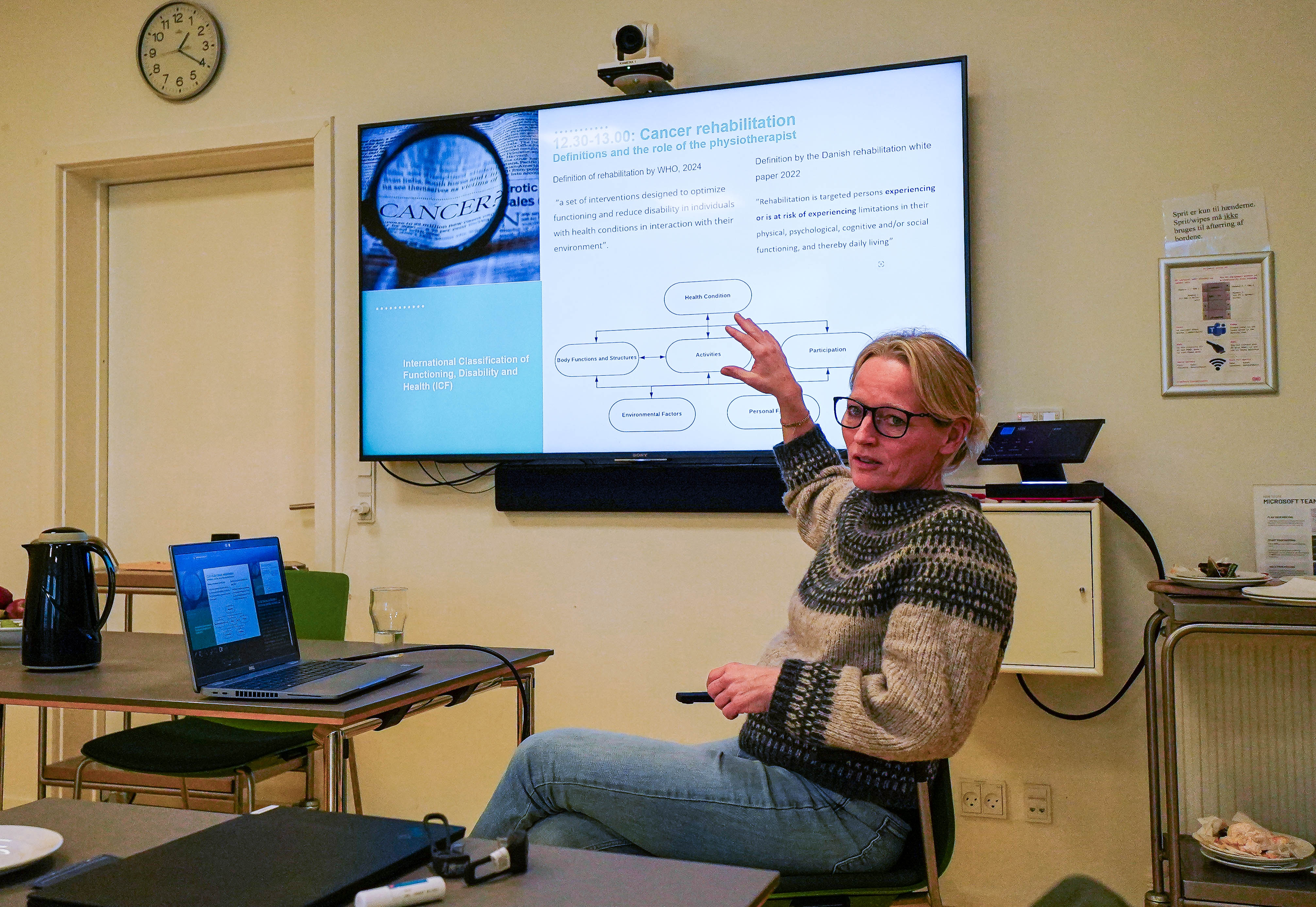 The second day focused on Denmark’s experience with physical activity in oncological rehabilitation. Participants engaged in discussions and practical activities, emphasizing the integration of digital tools in patient care. One of the highlights was a demonstration of the Icura tool, an advanced rehabilitation system that functions as a virtual therapist. Icura utilizes body-worn sensors to monitor home exercises and overall physical activity, sending real-time feedback to therapists. This data-driven approach allows healthcare providers to tailor rehabilitation programs according to individual patient needs, ensuring a personalized and effective recovery process.
