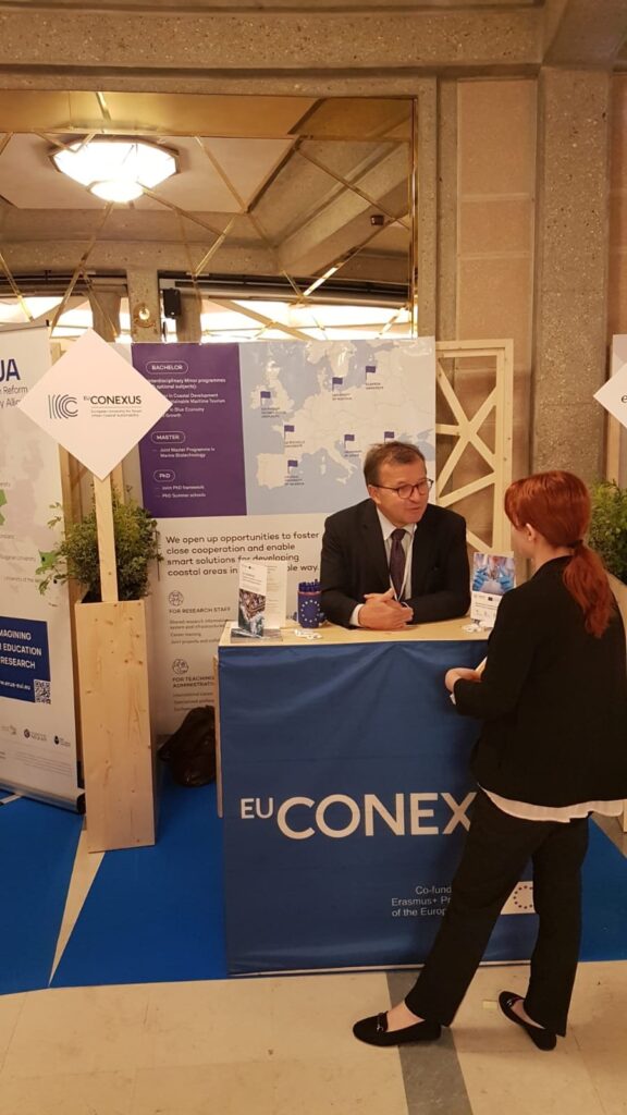 The EU-CONEXUS delegation took part in the meeting of the Rectors of European university alliances held yesterday in Versailles. On the Campus of European Universities, Klaipeda University Rector, Arturas Razbadauskas, was one of five panel speakers in Workshop C, presenting EU-CONEXUS within the theme “Role models for the transformation of European higher education”. Specifically, he addressed the impact of transnational cooperation carried out by European University alliances at three complementary levels: a. For the benefit of European students; b. For the development of institutional strategies; and c. for the modernization of national systems of education.
