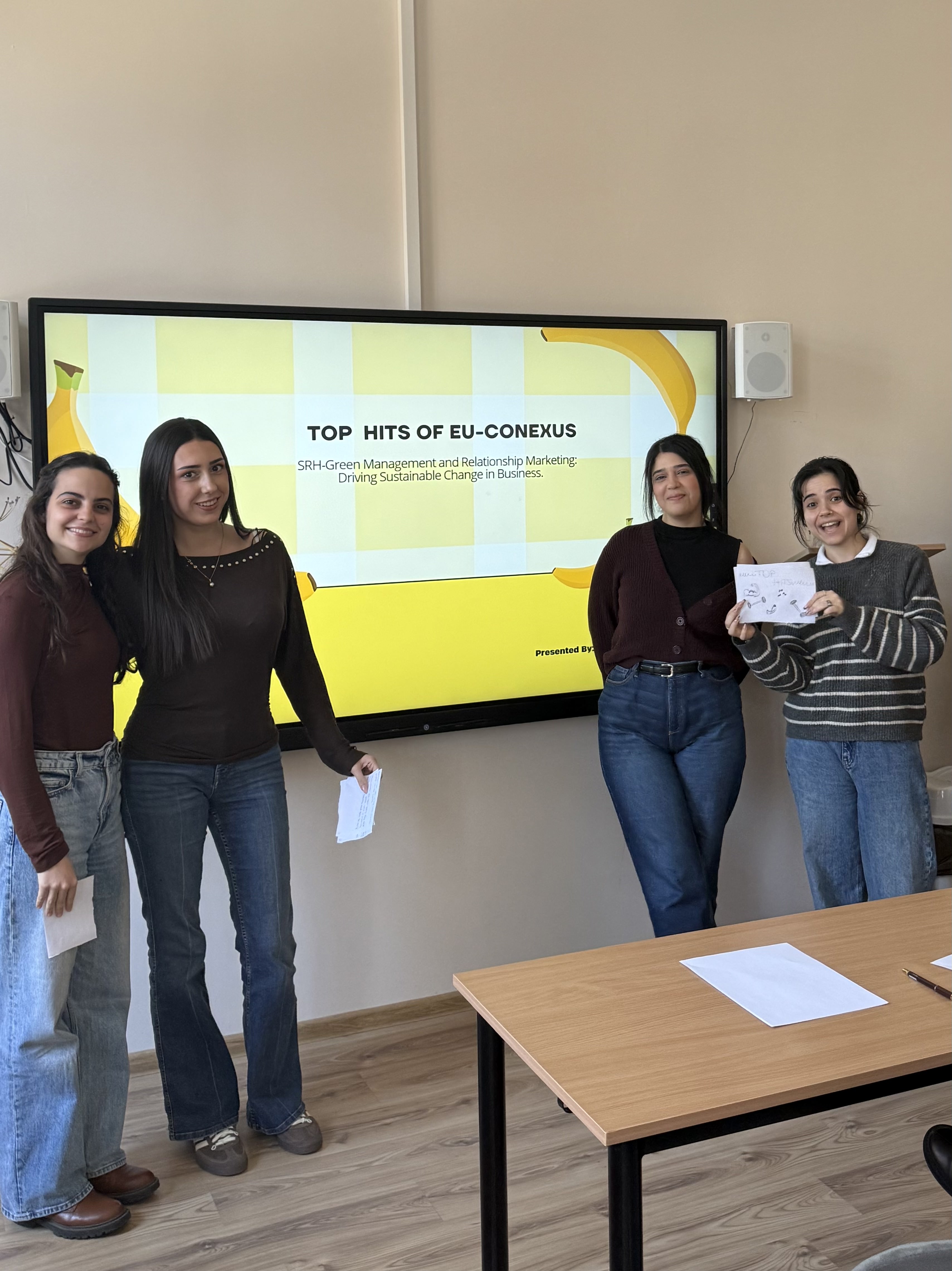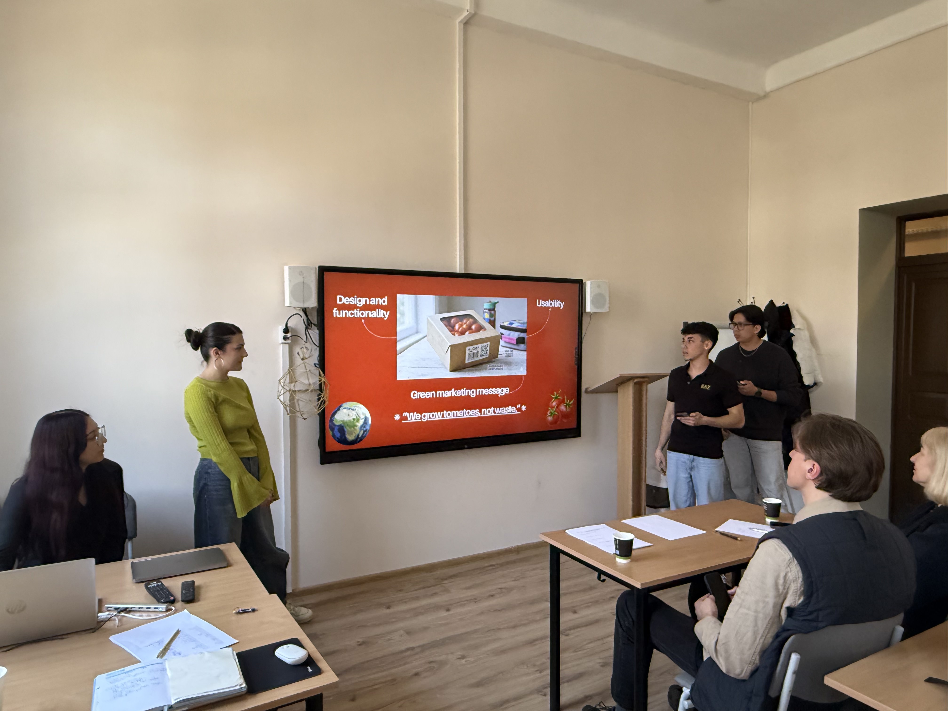 During the meeting, students addressed a real business challenge by developing sustainable packaging solutions for fruits and vegetables, integrating environmental, marketing, and consumer behavior perspectives. The programme combined theoretical lectures and practical activities: participants deepened their knowledge of green marketing, neuromarketing, consumer behavior, and media literacy, analyzed best practices, and worked in teams to develop innovative solutions.