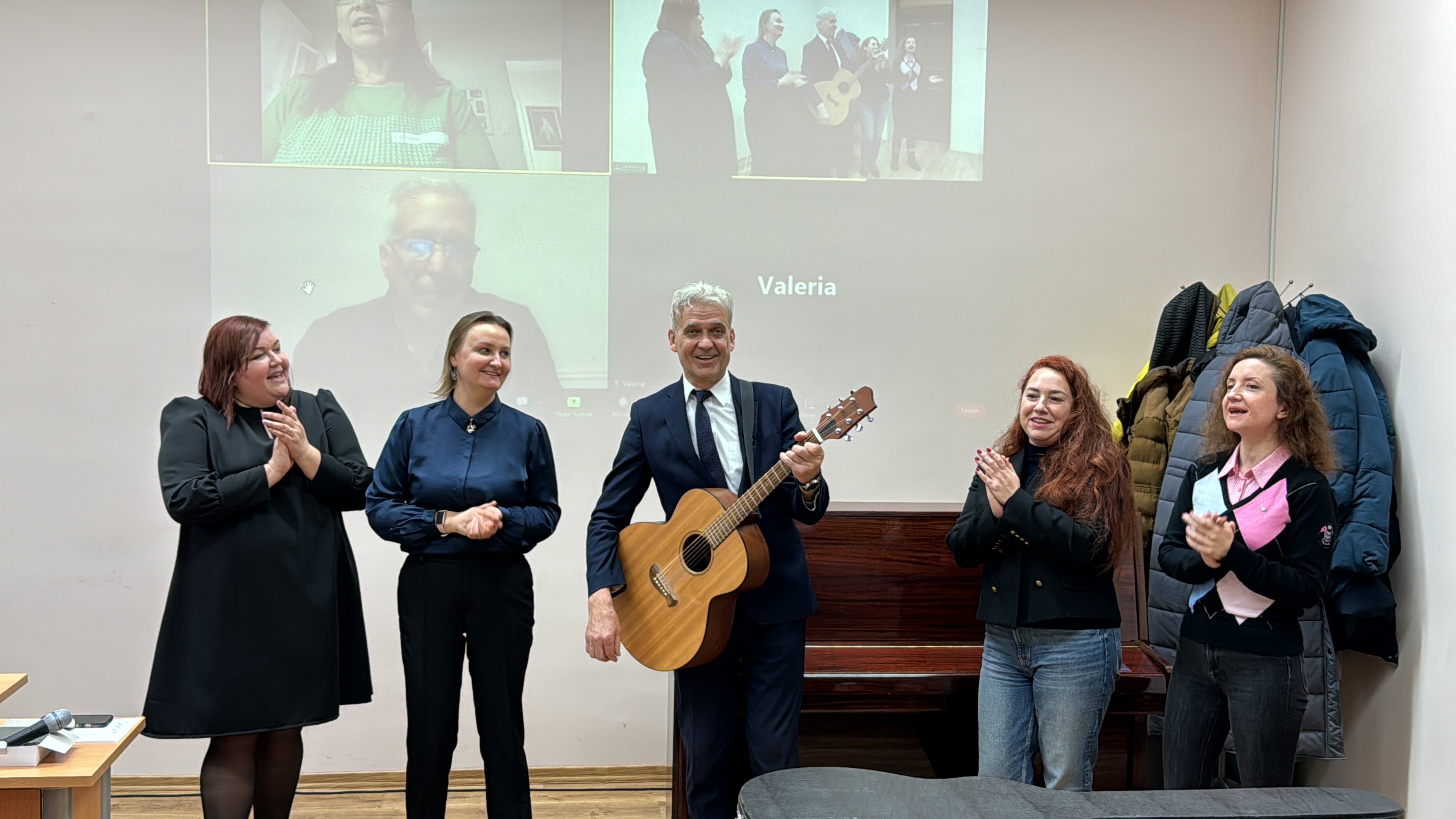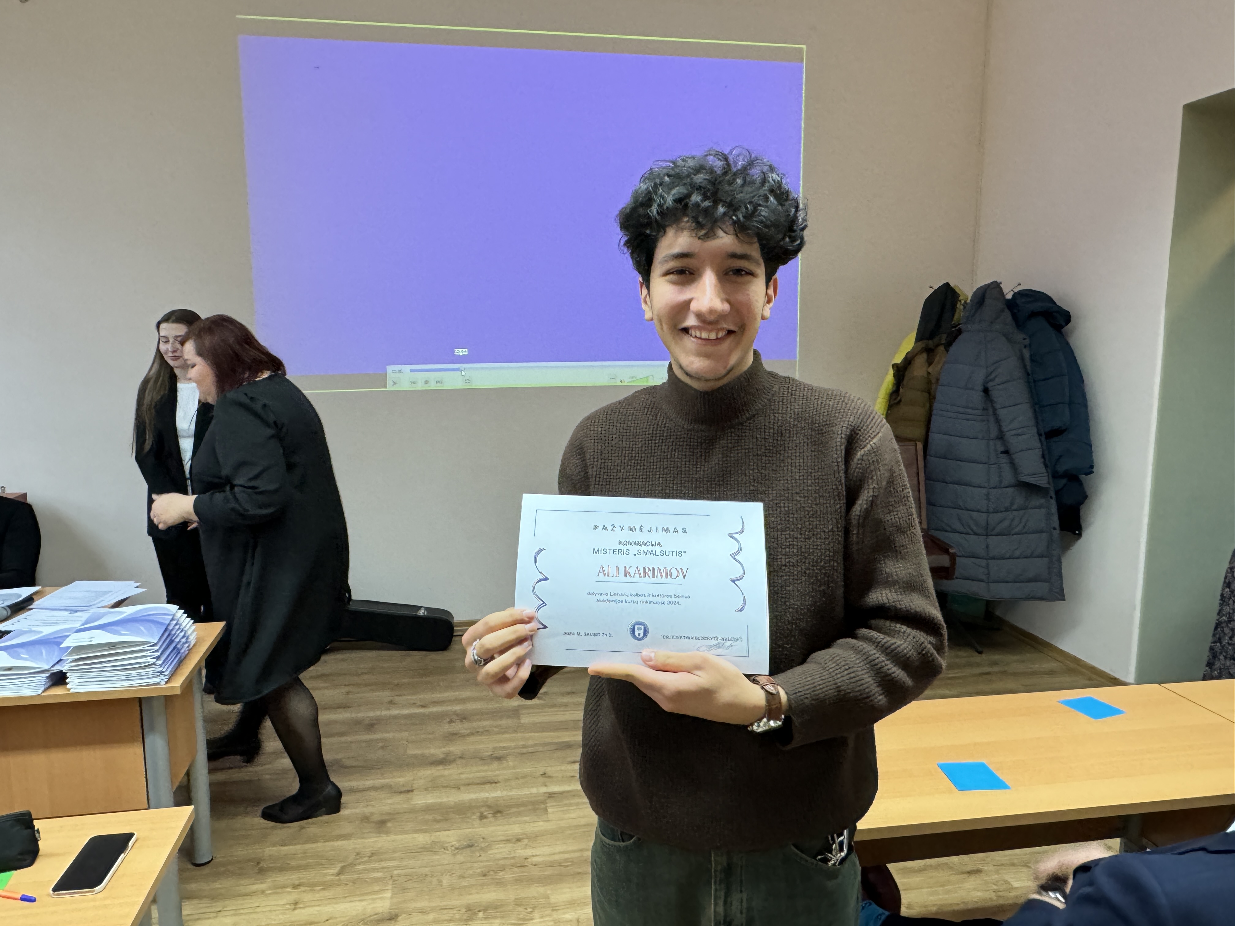 At the closing ceremony, the graduating cohort was congratulated by Rector of Klaipėda University prof. dr. Artūras Razbadauskas, Dean of the Faculty of Social Sciences and Humanities prof. Rimantas Balsys, and the head of the Centre of Lithuanian and Foreign Languages, the course coordinator dr. Kristina Blockytė-Naujokė. The Winter Academy graduation celebration was full of laughter, smiles, and hugs, and the "cherry on the cake" was the song by prof. Rimantas Balsys. The song united all the participants into a unified community.
