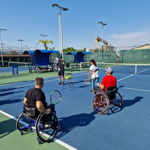 Frederick University invited a group of disabled persons to better get to know the sport of tennis. In cooperation with the teacher of the Course Stella Demetriou and the students of the University’s Physical Education and Sport Program, the participants had the opportunity to try basic tennis techniques and learn about the regulations governing the sport of tennis in wheelchairs.