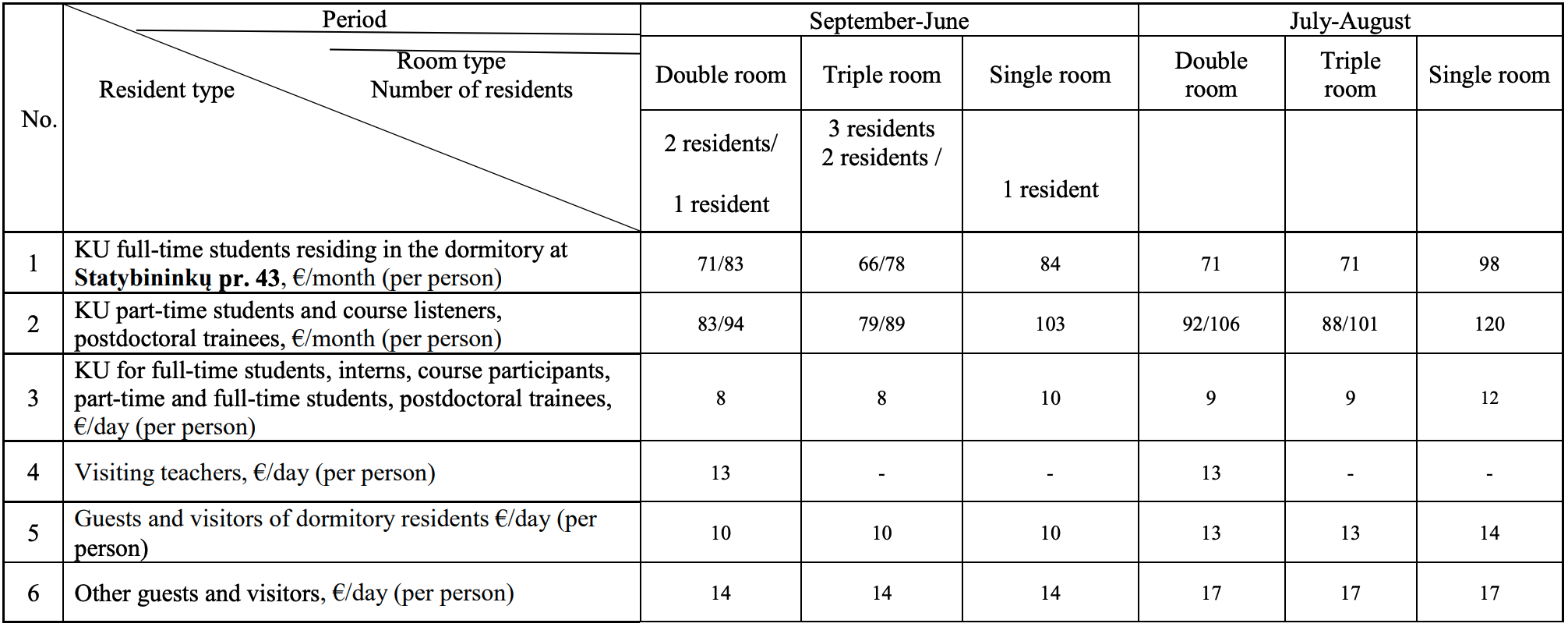ALL OTHER STUDENTS should submit completed application to: bendrabutis@ku.lt. Applicants are included in waiting list with residents who requested dormitory change and are ranked according to the date of application. Preference is given to students who live in one of the dormitories at least one semester. You will be informed if and when you can be accommodated.