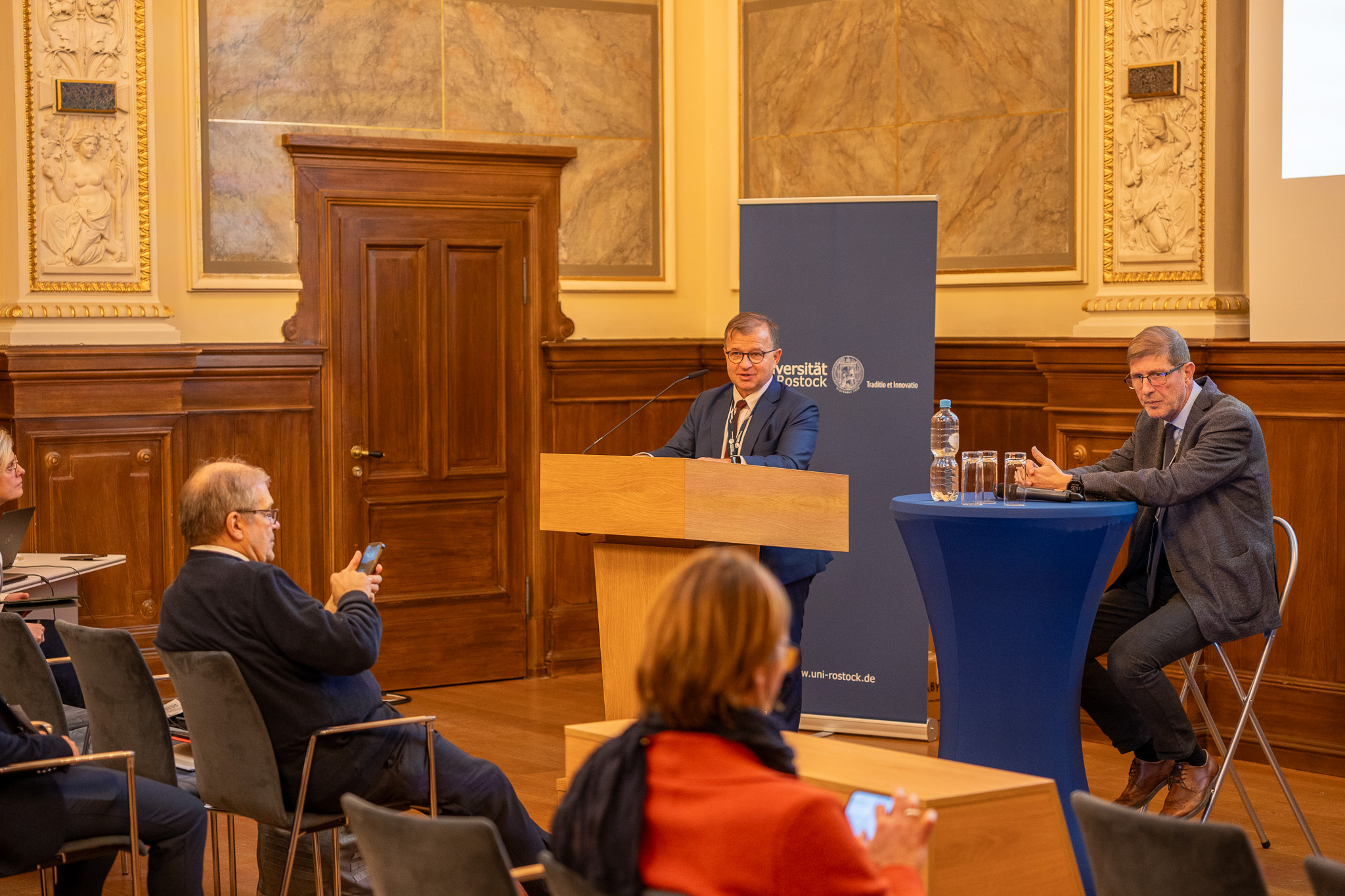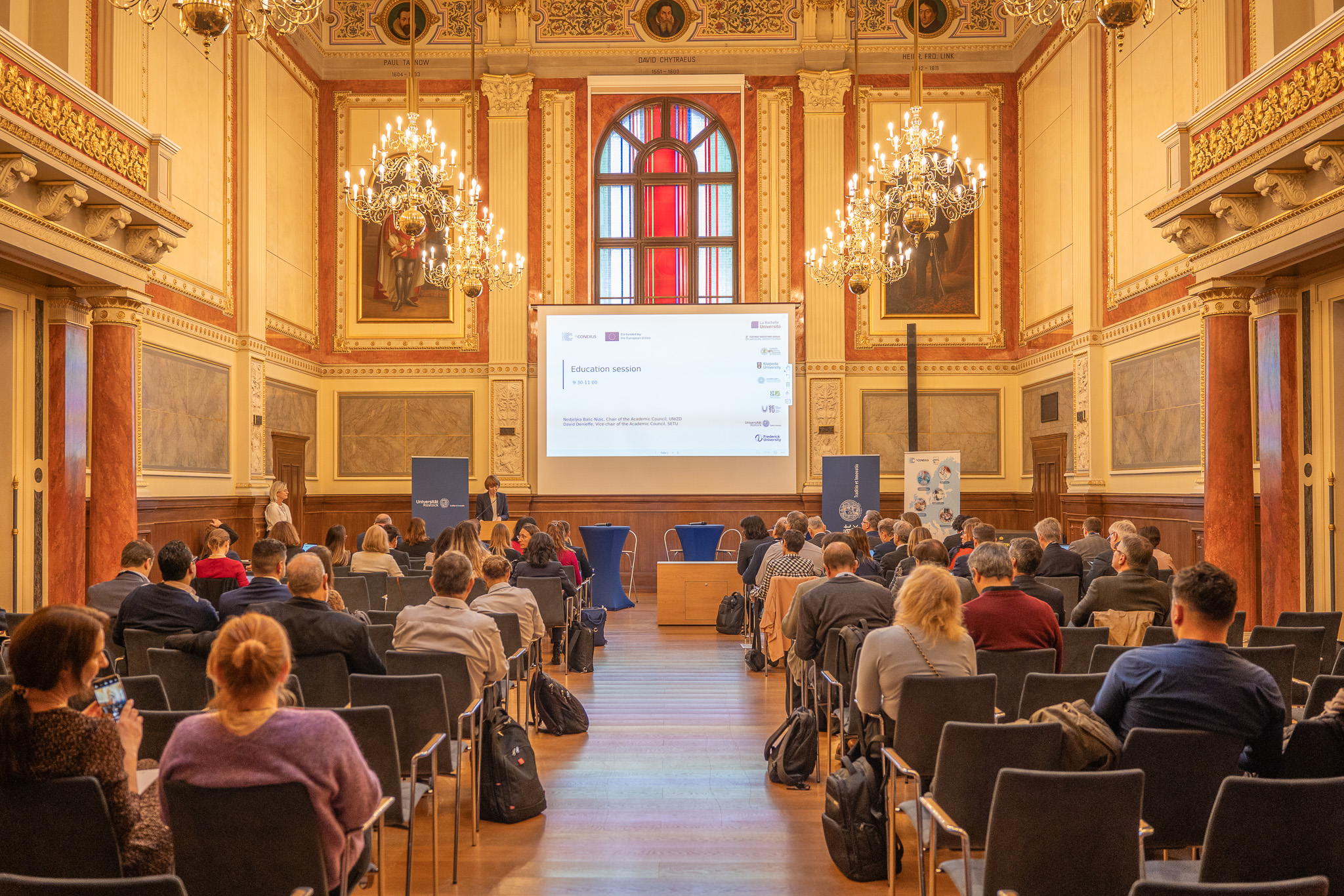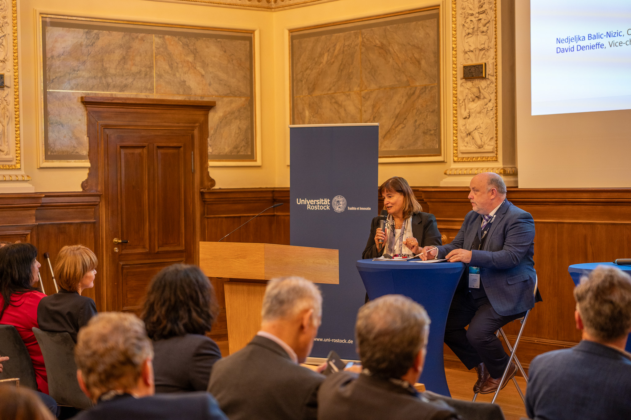 Konferenciją atidarė ir sveikinimo žodį tarė prof. dr. Elizabeth Prommer, Rostoko universiteto rektorė, Susanne Bowen, Vokietijos mokslo, kultūros, federalinių ir Europos reikalų ministerijos valstybės sekretorė ir La Rošelės universiteto rektorius Jean-Marc Ogjer.