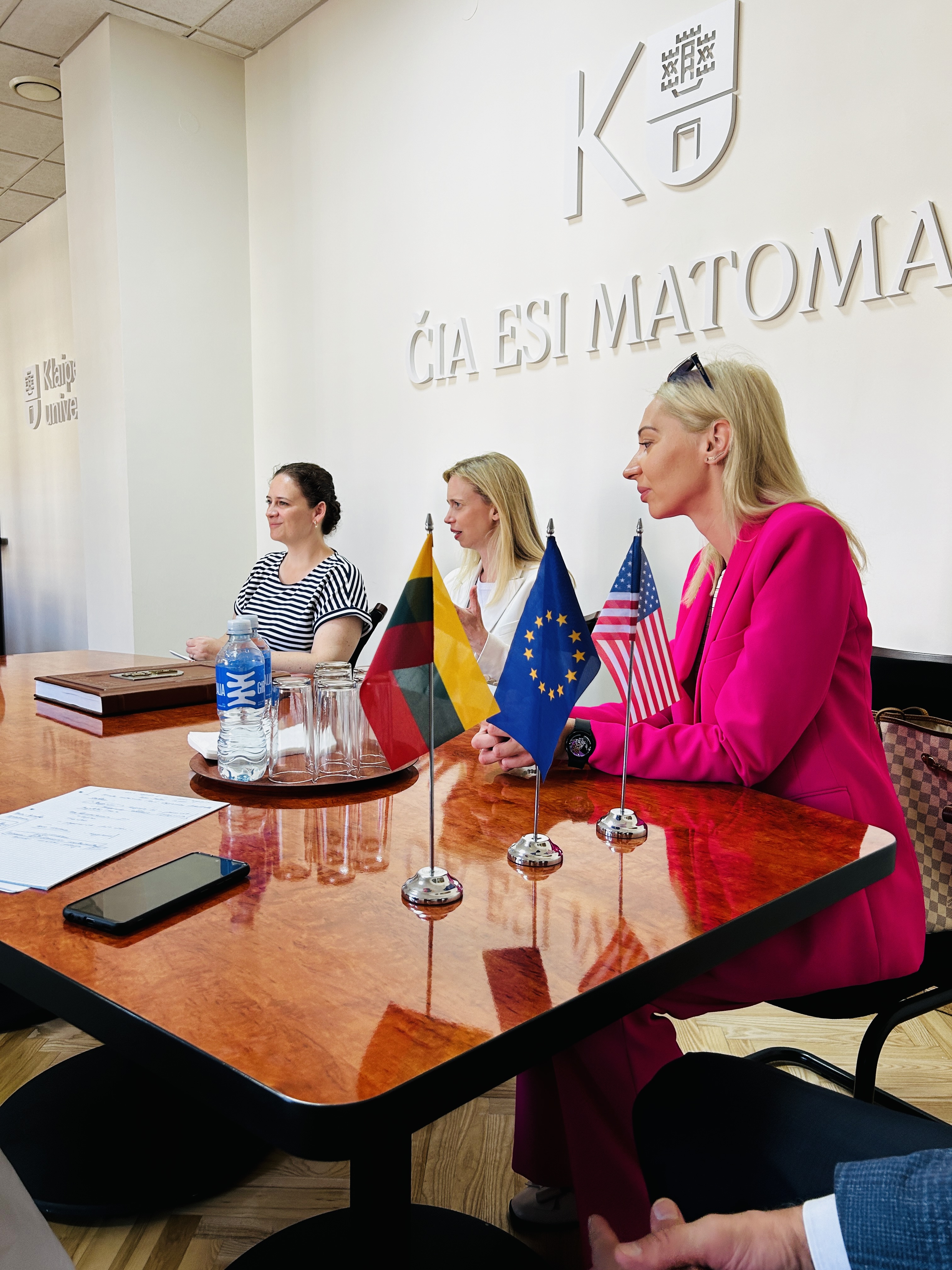Penktadienį, birželio 28 d., Klaipėdos universitete (KU) svečiavosi Jos ekscelencija JAV ambasadorė Lietuvoje Kara C. McDonald drauge su JAV ambasados Lietuvoje delegacija: Viešosios diplomatijos skyriaus vadove Colleen Smith ir Viešųjų programų vadove Karolina Vaitonyte-Kerziene.  Vizito metu buvo aptarti bendradarbiavimo būdai, kurie padėtų skatinti socialinę ir ekonominę gerovę, ypatingą dėmesį skiriant STEAM švietimui ir naujovėms.