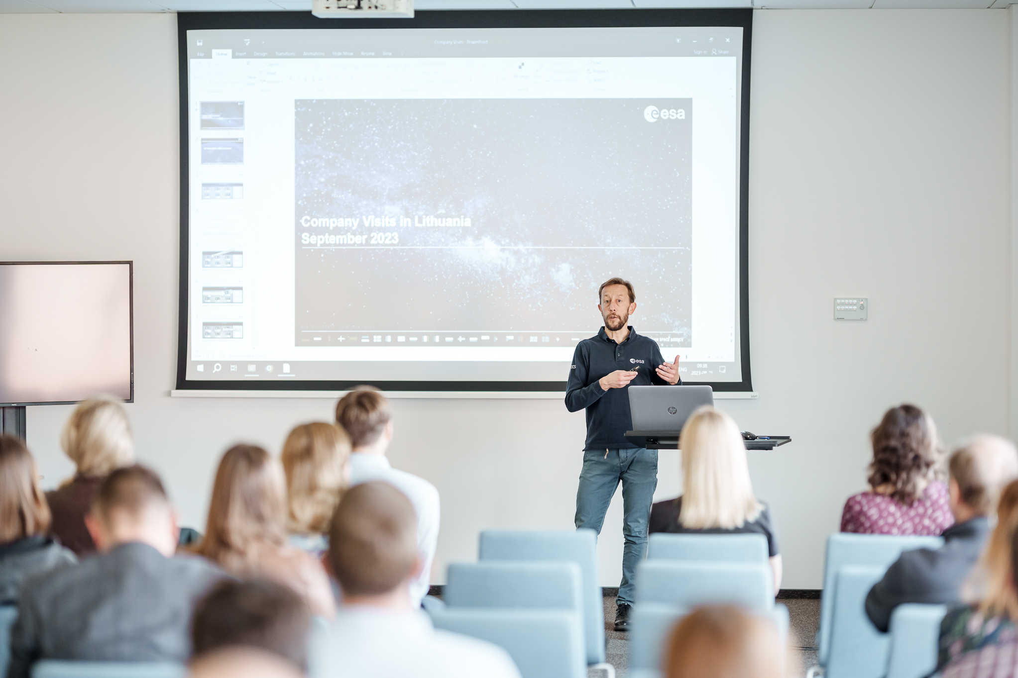 Michele Iapaolo mokslo, verslo ir aplinkosaugos institucijų atstovams išsamiai pristatė ne tik galimas bendradarbiavimo su EKA sritis, bet ir finansinius mechanizmus, į kuriuos gali pretenduoti turintieji ambicijų prisidėti prie įvairių kosmoso tyrimo ar duomenų, gaunamų iš kosmoso, panaudojimo programų. Iš anksto užsiregistravusieji turėjo galimybę pasikonsultuoti asmeniškai apie jų idėjų potencialą pretenduoti į EKA finansavimą.
