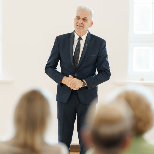 Pagrindinis konkurso rėmėjas KU Ateities paramos fondo pirmininkas Vytautas Adomaitis, renginio globėjas KU rektorius prof. dr. Artūras Razbadauskas.