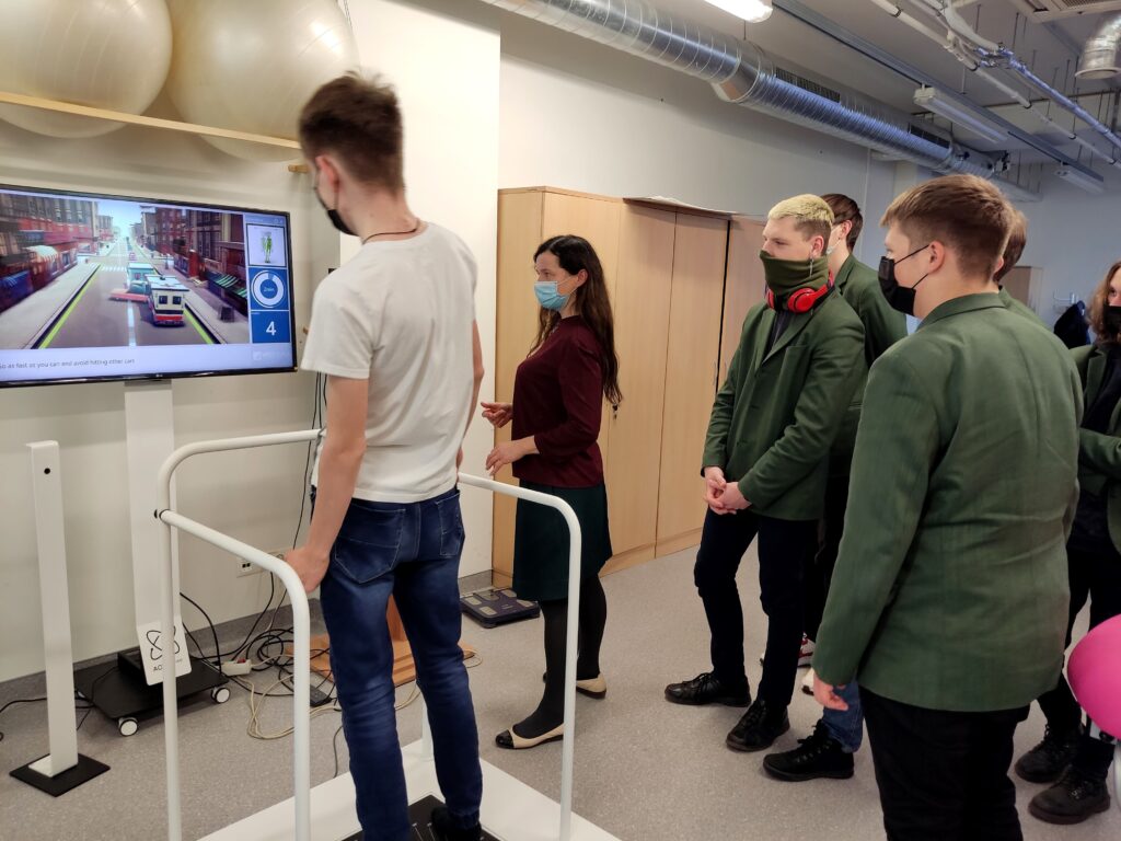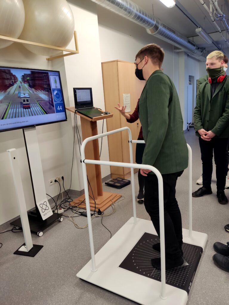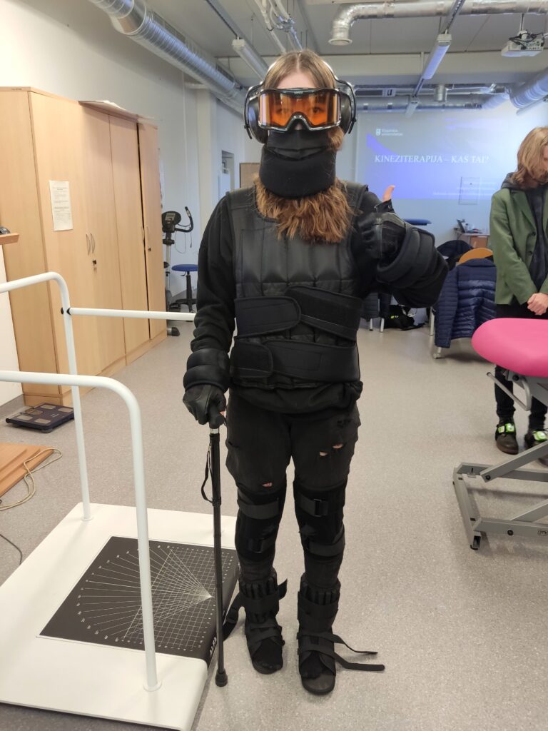 „Man labiausiai patiko dirbti su svarmenimis. Įlindau į tokį sunkų kostiumą, kuris sveria gal 30 kilogramų. Vaikščioti su juo ir atsikelti iš lovos nėra taip lengva. Dabar galiu suprasti, kaip jaučiasi seni žmonės“,– įspūdžiais dalijosi mokinė Taja. „Man labiausiai patiko pusiausvyros pratybos! Kompiuterio ekrane stebėjau save važiuojantį autobusiuku. Po mano padais buvo padėtas sensorinis kilimėlis, tad vien savo kūno svoriu turėjau valdyti savo autobusiuką. Galima nusistatyti greitesnį arba lėtesnį greitį, rinkti taškus, tad visa tai primena kompiuterinį žaidimą, tik skirtumas tas, kad dirba kojų raumenys, svarbi pusiausvyra. Tik nulipęs nuo pagrindo pajutau, kiek iš tikrųjų reikėjo daug pastangų, norint suvaldyti autobusiuką“,– pasakojo mokinys Justas.