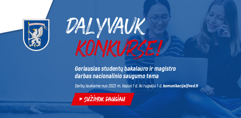 Valstybės saugumo departamentas (VSD) organizuoja konkursą Lietuvos aukštųjų universitetinių mokyklų bakalauro ir magistro studijų studentams, 2022–2023 mokslo metais apgynusiems baigiamuosius darbus, nagrinėjančius nacionaliniam saugumui ir žvalgybai reikšmingas temas.