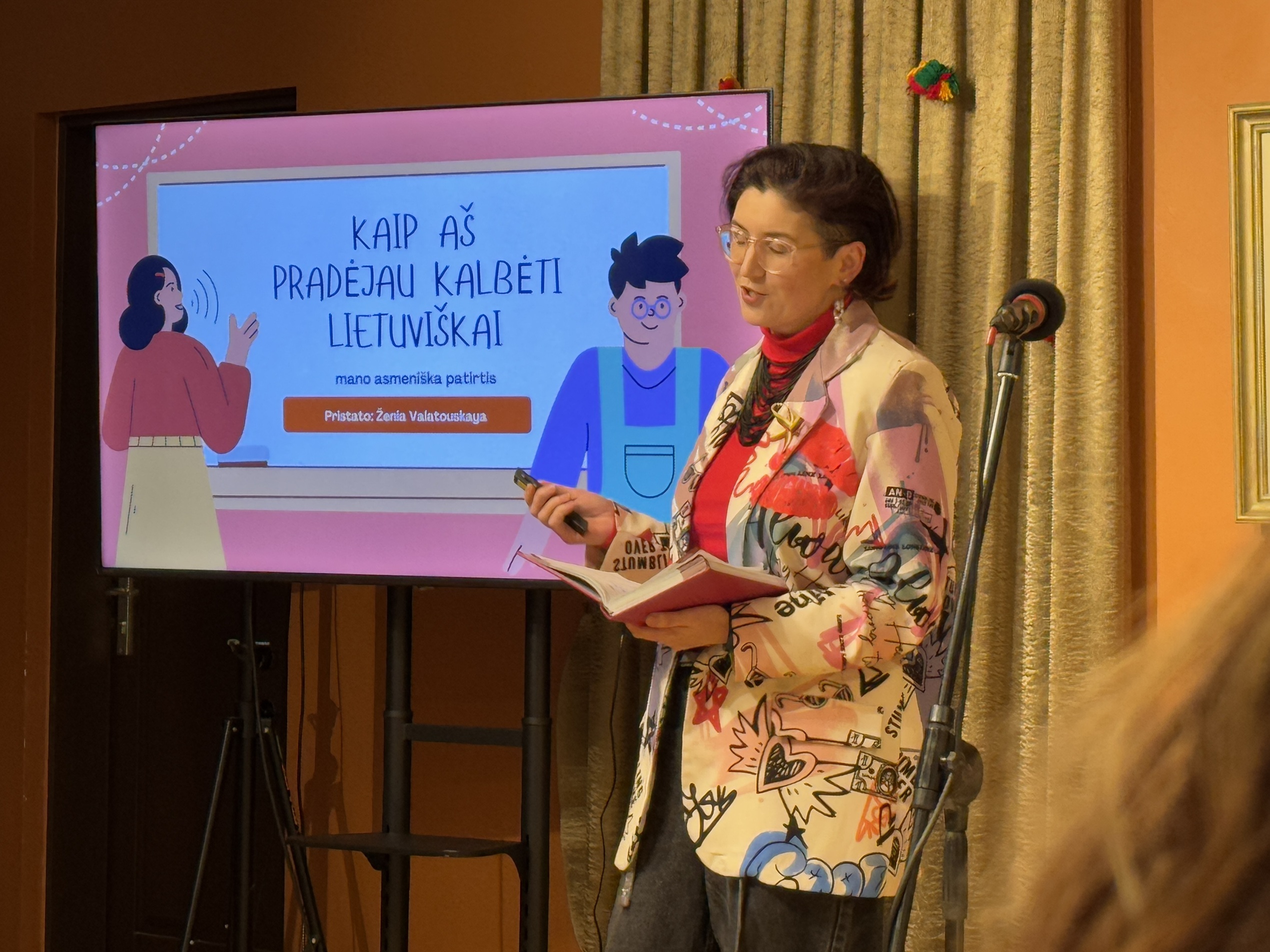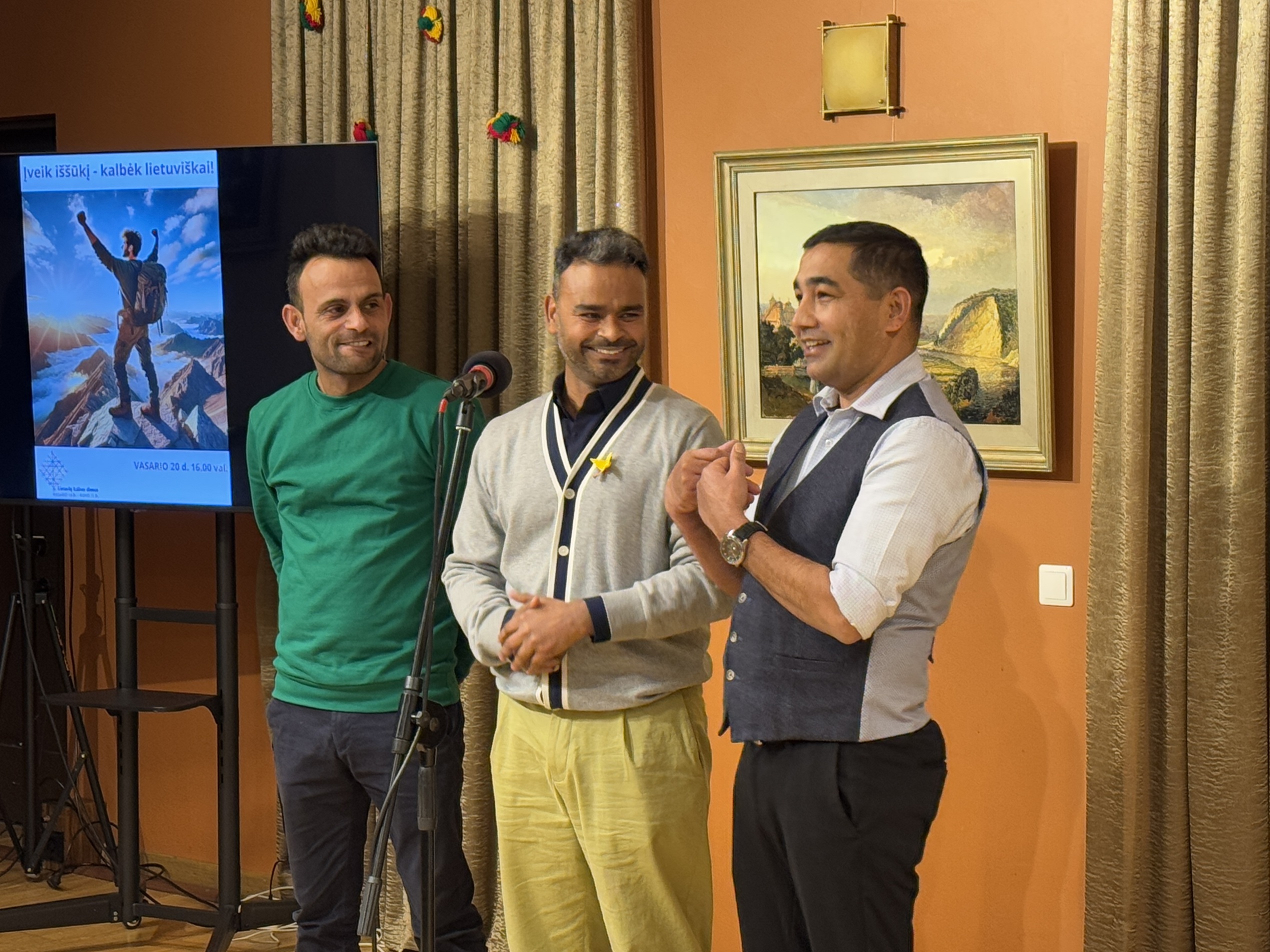 Lietuvių kalbos besimokantys užsieniečiai pasakojo apie savo patirtį, iššūkius ir džiaugsmus, su kuriais susiduria mokydamiesi kalbos, taip pat dalijosi motyvacija, kaip įveikia sunkumus ir pasiekia sėkmės. Renginio dalyviai turėjo galimybę pasidalinti savo pasiekimais ir įkvėpti kitus drąsiai priimti naujus kalbos iššūkius.