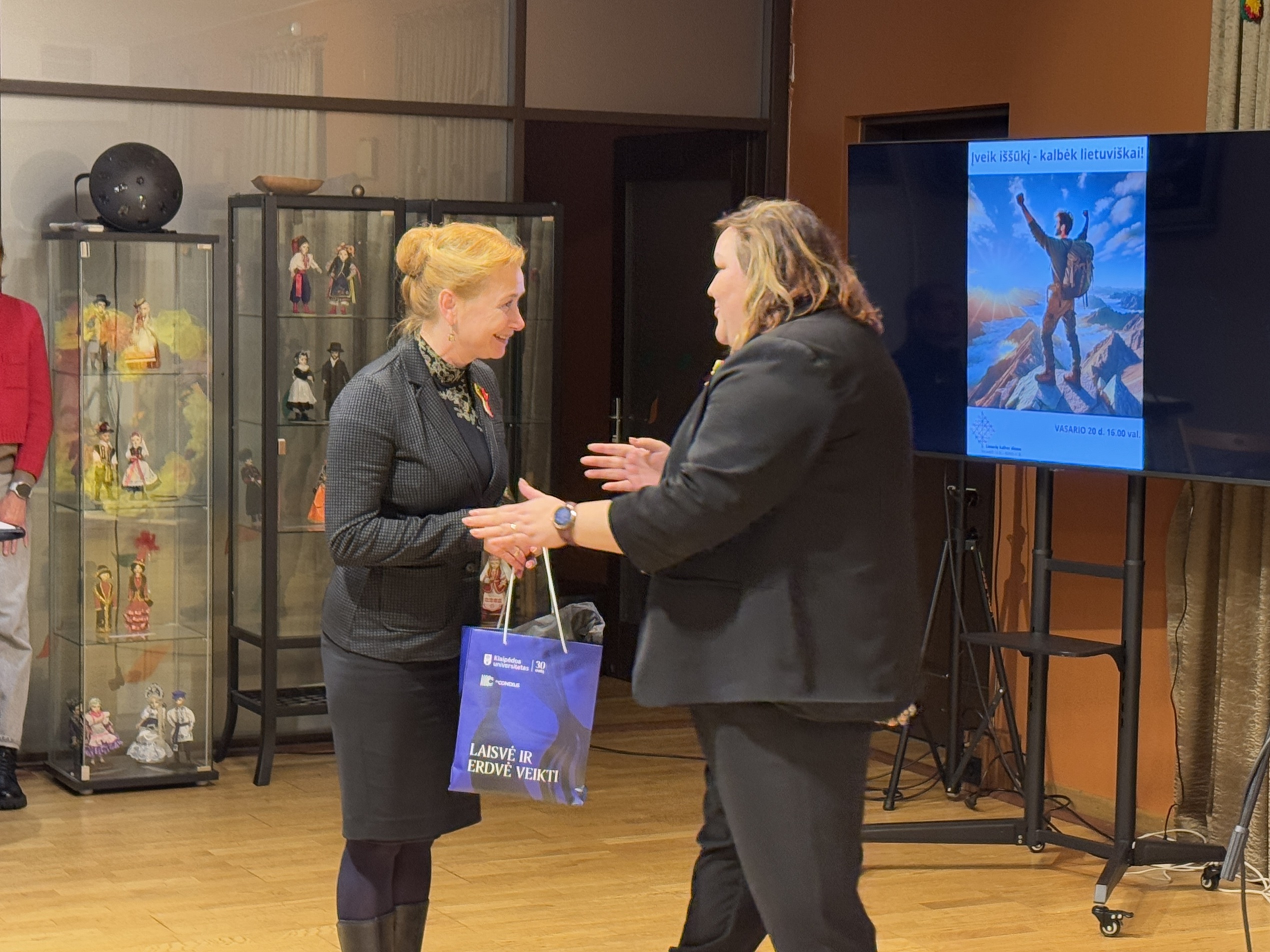 Renginyje dalyvavo Klaipėdos universiteto lituanistikos ir užsienio kalbų centro vadovė dr. Kristina Blockytė-Naujokė bei mokytojos Tetiana Burduzha ir Oleksandra Ovchynnykova. Abiejų mokytojų kelias į lietuvių kalbos mokymą buvo įdomus ir prasmingas – jos pačios yra baigusios lietuvių kalbos kursus Klaipėdos universitete ir dabar moko ukrainiečius lietuvių kalbos A1 lygiu. Tai puikus pavyzdys, kaip kalbos mokymasis gali tapti svarbiu įrankiu, siekiant ne tik įveikti asmeninius iššūkius, bet ir padėti kitiems integruotis į naują aplinką.
