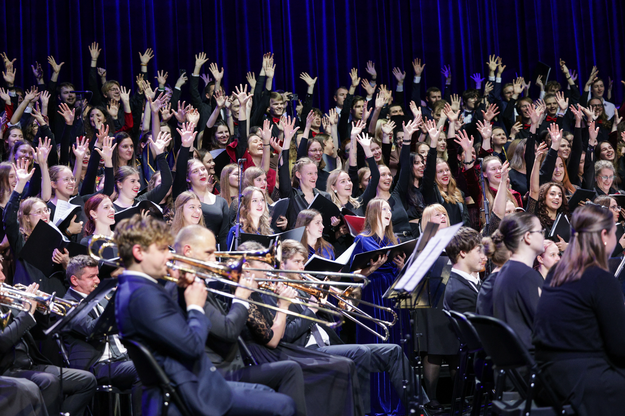 Tarptautinei studentų dienai paminėti skirtame festivalyje dalyvavo 15 aukštųjų mokyklų studentų chorų iš Kauno, Klaipėdos, Šiaulių, Vilniaus aukštųjų mokyklų, svečiai iš Lenkijos – Poznanės Adomo Mickevičiaus universiteto mišrus choras ir Liublino gamtos mokslų universiteto mišrus choras bei Latvijos universiteto pučiamųjų instrumentų orkestras.