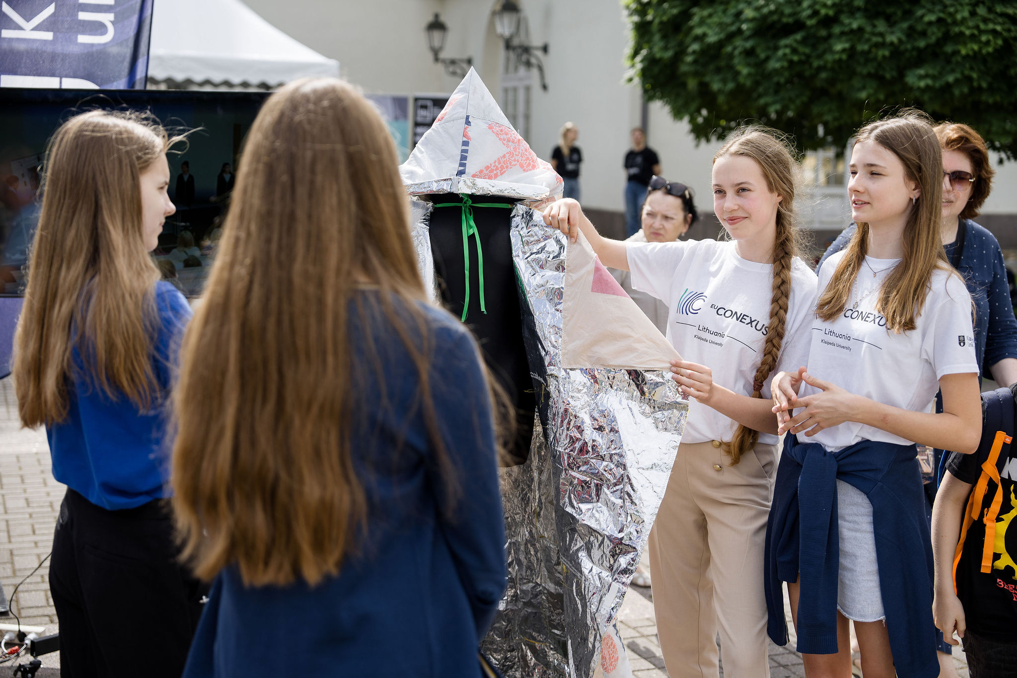 Renginyje, vykusiame minint Pasaulinę aplinkos apsaugos dieną, projektą „Palapinė-apsiaustas-miegmaišis“ moksleiviams, mokytojams ir kitiems lankytojams pristatė šių metų EU-CONEXUS organizuoto konkurso „Think Smart, Create Green“ nugalėtojai – S. Dacho progimnazijos moksleiviai. Komanda konkursui sukūrė palapinę-apsiaustą-miegmaišį. Moksleiviai skelbė pakuočių rinkimo akciją, tvarkė, plovė riebaluotas pakuotes. Iš jų buvo pasiūtas pirmasis sugalvoto produkto sluoksnis, kitas buvo siuvamas iš nesuyrančių plastiko maišelių, vidurys užpildytas naudotais medvilniniais audiniais. Toks apsiaustas gali gelbėti žmones kaip palapinė, pavyzdžiui, ištikus žemės drebėjimui, gali šildyti ir saugoti nuo lietaus kaip apsiaustas ar atlikti miegmaišio funkciją.