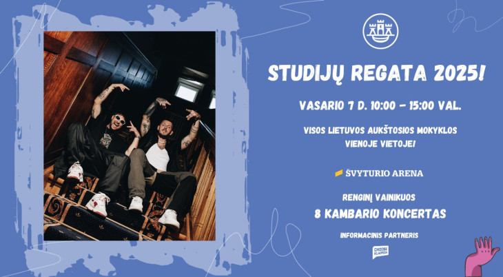Studijų regata 2025 – jau dešimtus metus organizuojama studijų mugė skirta 8-12 kl. moksleiviams Klaipėdos mieste! Tai puiki proga susipažinti su studijų galimybėmis, pakalbinti aukštųjų bei profesinių mokyklų atstovus dominančiais klausimais ir jau nuo dabar pradėti dėlioti ateities planus.